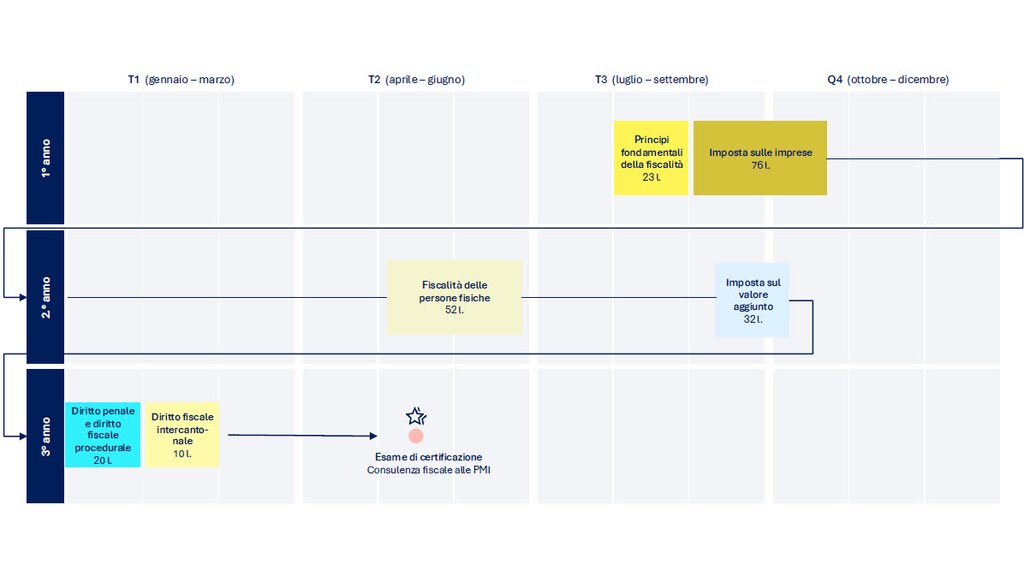 Il corso di certificazione «Consulenza fiscale per PMI» è parte integrante della formazione per diventare esperto fiscale diplomato e viene frequentato dagli studenti nell'ambito del loro curriculum. Per questo gruppo target non è necessaria un’iscrizione separata.
