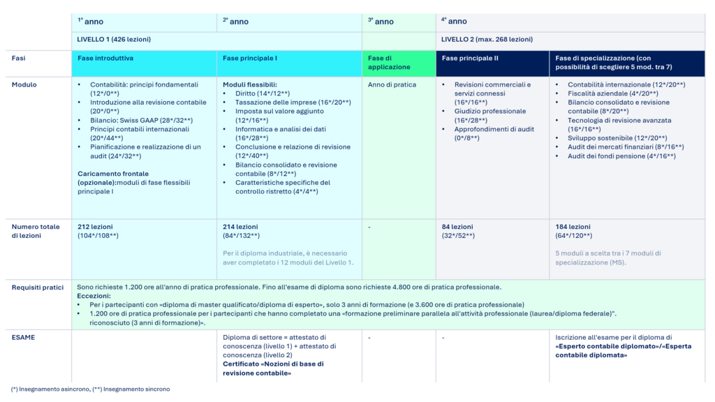 Il diploma di settore rilasciato da EXPERTsuisse SA attesta le competenze acquisite nei primi dodici moduli. Le conoscenze acquisite nei primi due anni di formazione vengono verificate tramite valutazioni virtuali e scritte. In caso di esito positivo, i diplomati ottengono la certificazione «Certificazione in basi di revisione».